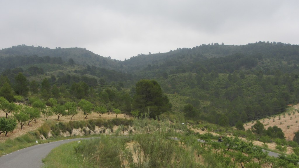 Fairly uneventful day today – I started out following the gorge out of Ayna, which had a tricky bit of singletrack at one stage, but then was back in rolling hills and on tarmac. Today marks the time I really do leave the mountains and start to move into lower hills and plains. I saw many small hamlets which had been deserted, but the land was still being farmed: It was lovely rolling countryside and I cycled through miles of orchards again – almonds & apricots mainly. Also had a couple of entomology and geology moments (see video).