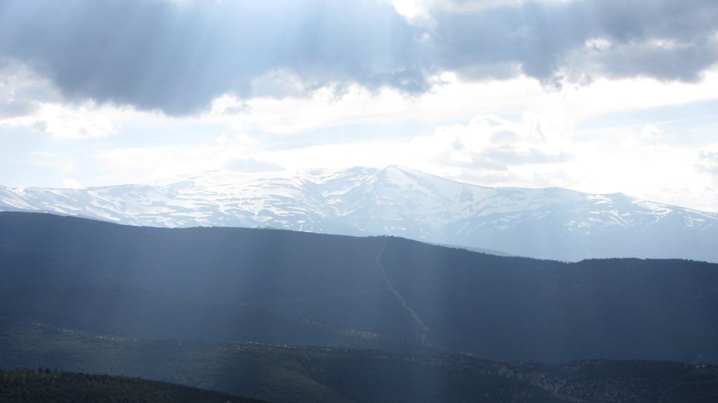 It’s now late evening and my plan worked out. I got the taxi up to the pass and made the descent to La Calahorra in 20 mins. There were some spectacular views…here is one of Mulacen: