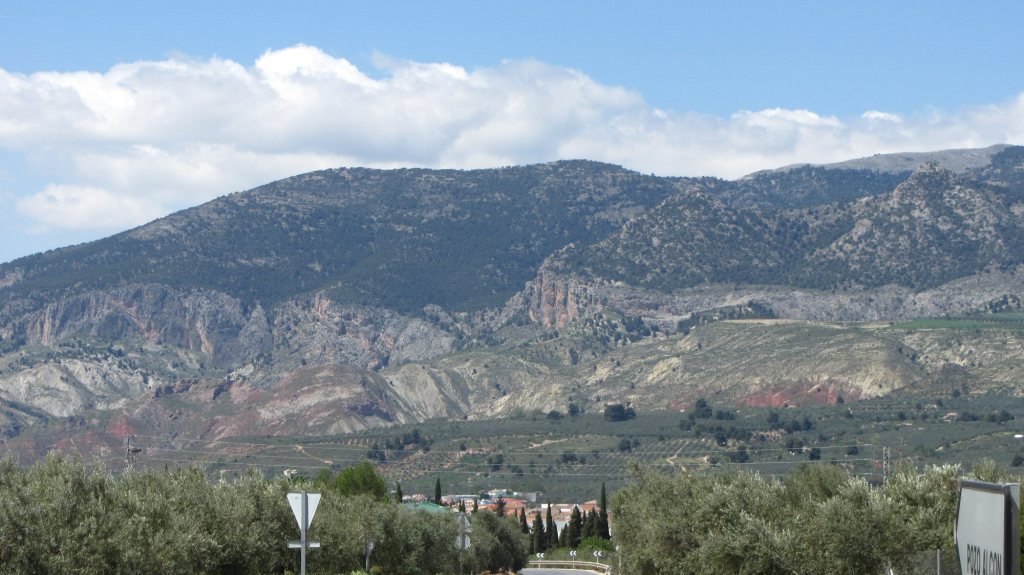 It was a long ride from Gor to Pozo Alcon; I tried to find an off-road route, but there was no viable route. This was because most of the ravines ran north/south, so there were very few east west routes. There was just one road north and this was tarmaced. In the end I was ok with this as the ride was so long it made it a lot quicker. Here is the view of the Sierra de Cazorla, just behind Pozo Alcon, whose rooftops you can see at the bottom of the shot.