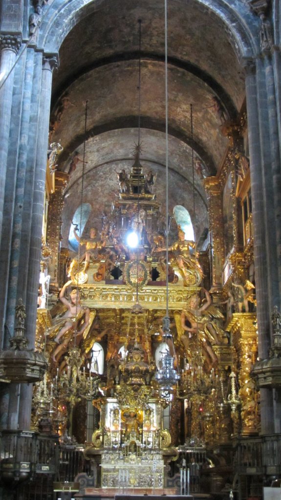 After 2 days fast travel on tarmac I finally arrived in Santiago (see the video diary for live action!). The center is St James (Sant Iago) Cathedral. It”s pretty imposing on the outside: