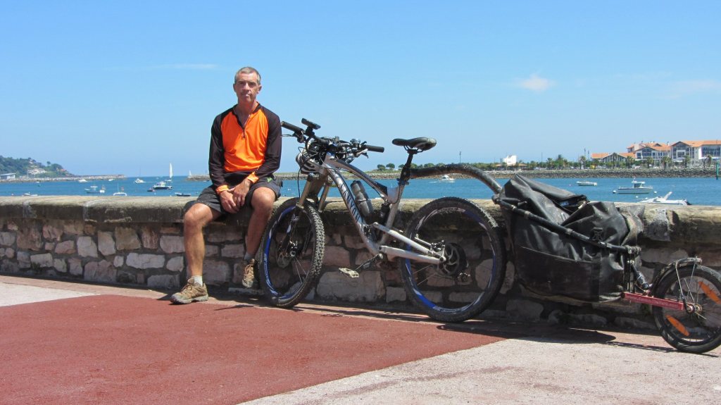 Irun is a bit of a culture shock. After months of countryside and pueblos, it is a big city with lots of traffic. My hotel is in a suburb to the north called Hondarribia, and is an old fortress. I finally make it to the Atlantic in the harbour of Hondarribia: I forgot to smile in this photo but I was enjoying myself, honest.